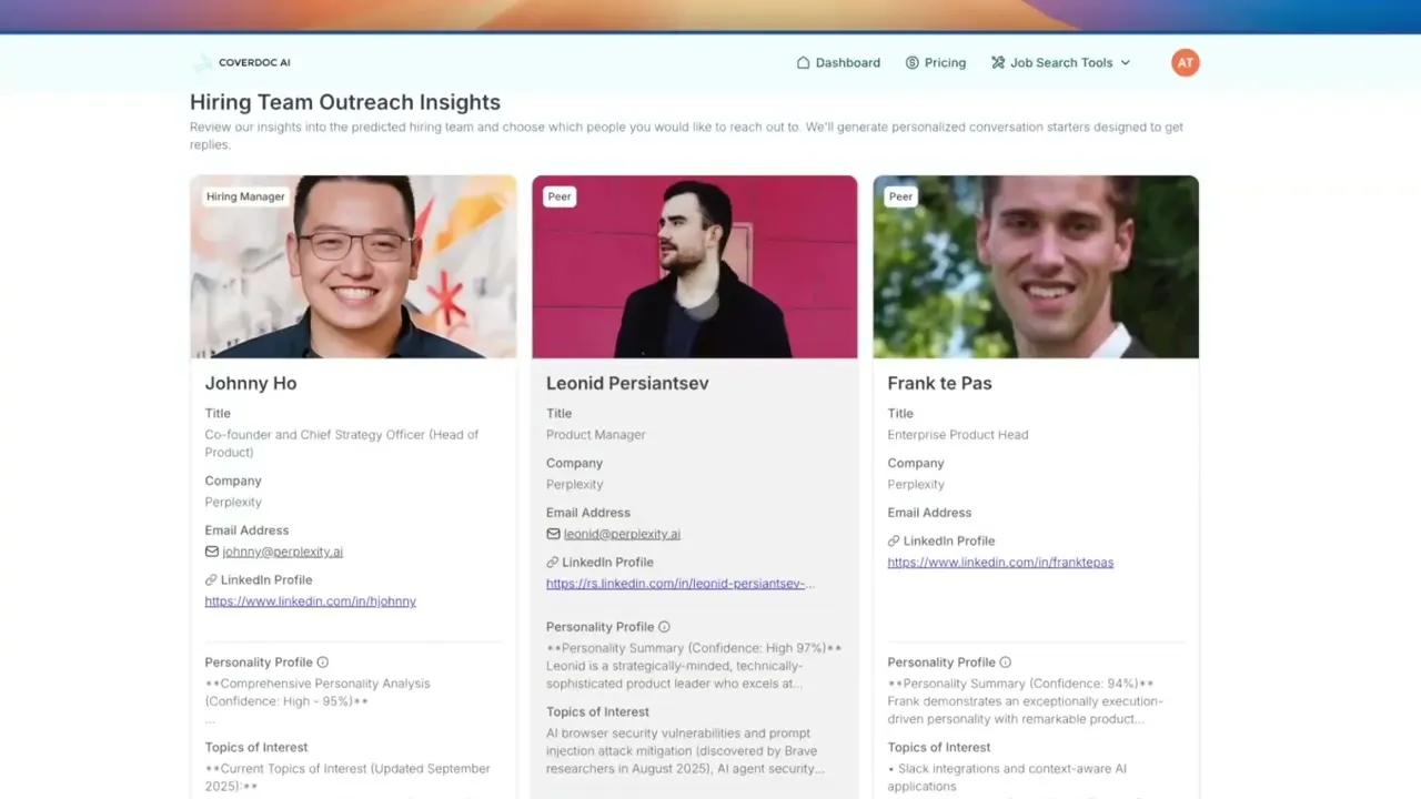 Each message is personalized and designed to get replies based on the hiring manager's personality, interests and communication style.